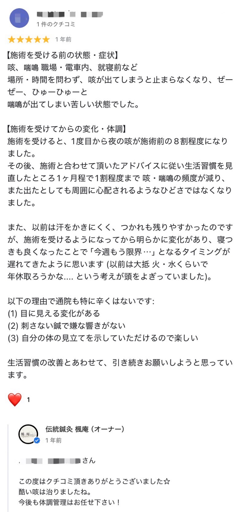 咳が減り、楽になりました。